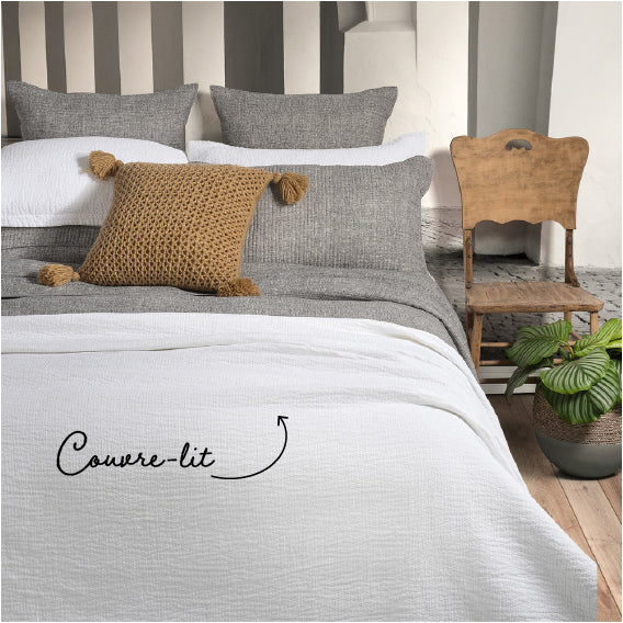 Le couvre-lit est principalement un élément décoratif. Il est généralement plus mince & léger, ce qui en fait un choix idéal pour apporter une touche de style à votre lit sans trop de chaleur. Le couvre-lit est souvent retiré avant de dormir, car il ne fournit pas suffisamment de chaleur pour une nuit de sommeil confortable, surtout en hiver. Il sert à ajouter de la texture ou des motifs à votre chambre tout en restant fonctionnel pour les journées.