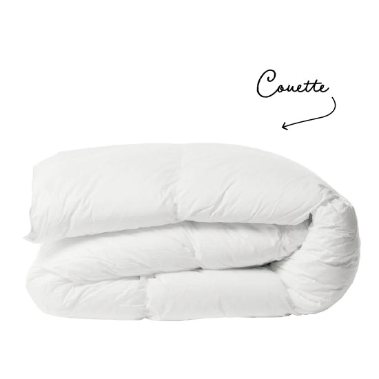 Si la chaleur est une priorité pour vous pendant votre sommeil, la couette est probablement le choix à privilégier. Il s’agit d'une enveloppe de tissu remplie de garnissage tel que du duvet, des plumes ou des fibres synthétiques. Contrairement au couvre-lit & à la courtepointe, la couette est plus épaisse & beaucoup plus chaude, ce qui en fait un élément essentiel pendant les mois plus froids. Elle constitue la couverture principale sur le lit et peut être utilisée toute l'année.