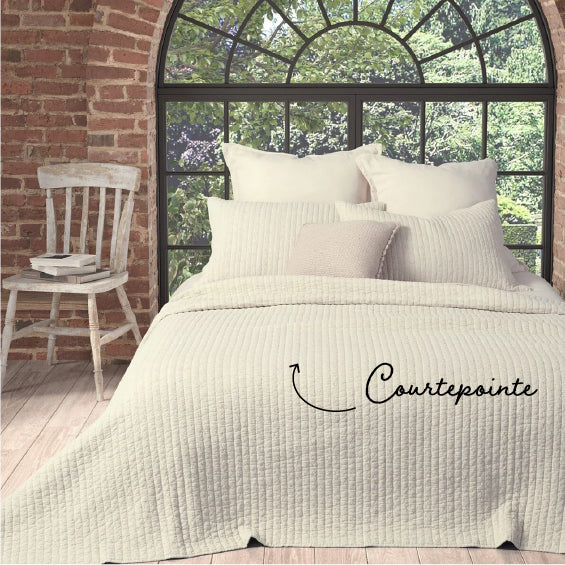 La courtepointe est un peu plus épaisse que le couvre-lit. Elle est souvent confectionnée avec des tissus matelassés, ce qui lui permet d'offrir une certaine chaleur, tout en restant relativement légère. Ce type de literie peut servir à la fois de couverture d’appoint ou d’élément décoratif. Contrairement au couvre-lit, la courtepointe peut être utilisée pour se couvrir pendant la nuit, bien qu’elle ne soit pas aussi chaude & épaisse qu'une couette.