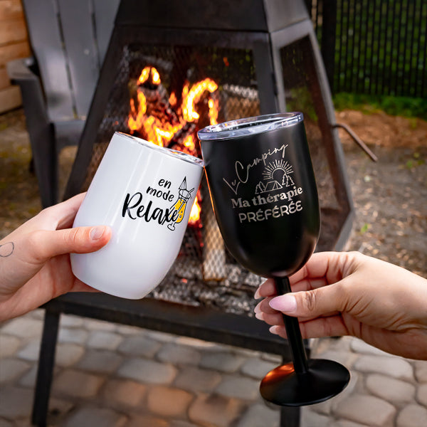 Rien ne dit « soirée relax » comme un bon verre de vin… surtout s’il est gardé à bonne température dans un verre isotherme qui affiche un message drôle & léger. C’est l’accessoire parfait pour trinquer à l’amitié... ou aux marshmallows brûlés - c’est selon.