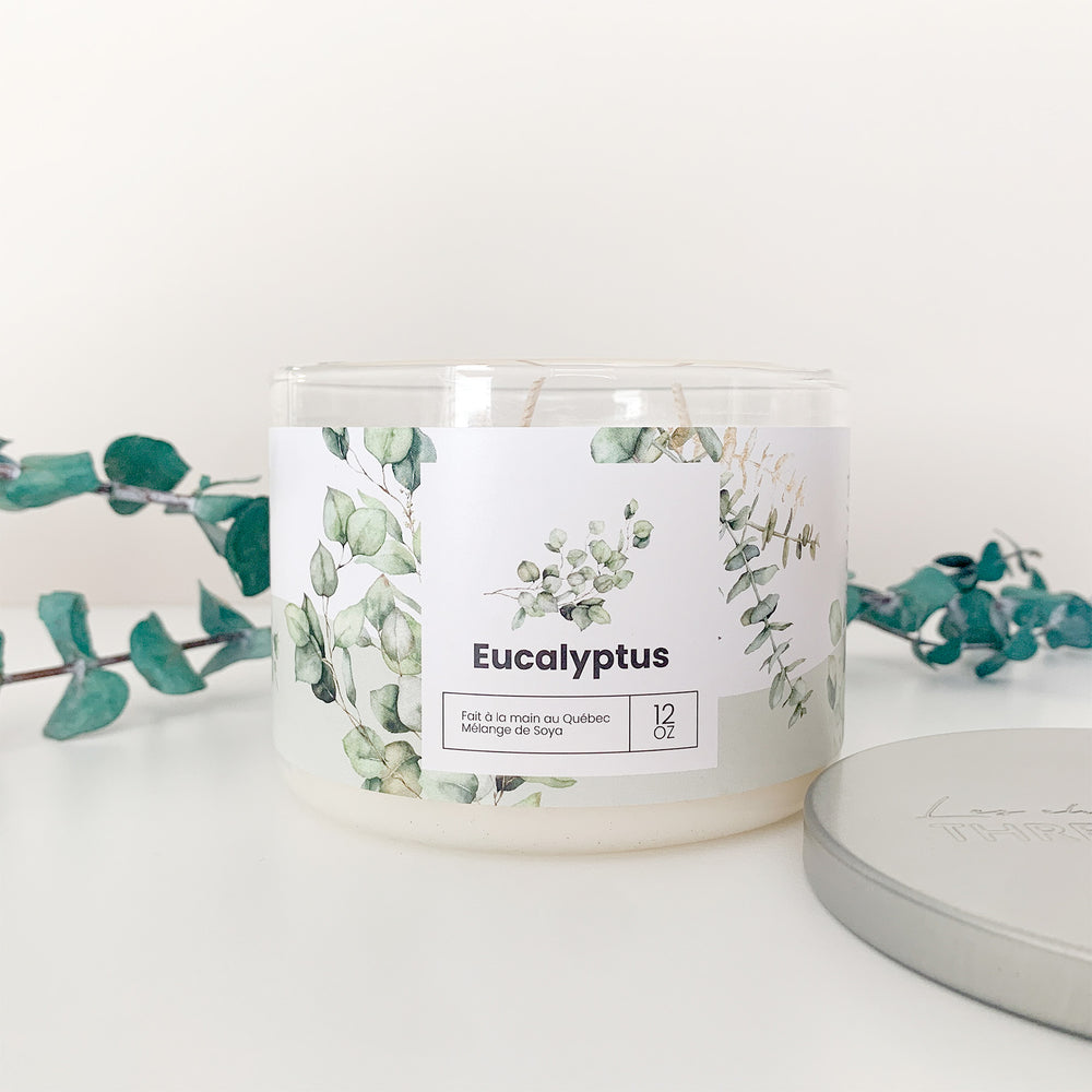 Imaginez-vous une promenade en forêt, l’air frais & vivifiant qui vous réveille. La brise d’eucalyptus chasse la torpeur de l’été & ravive les sens. En chandelle à 3 mèches, elle purifie l’air tout en créant une ambiance rafraîchissante. Un must pour commencer l’automne du bon pied.