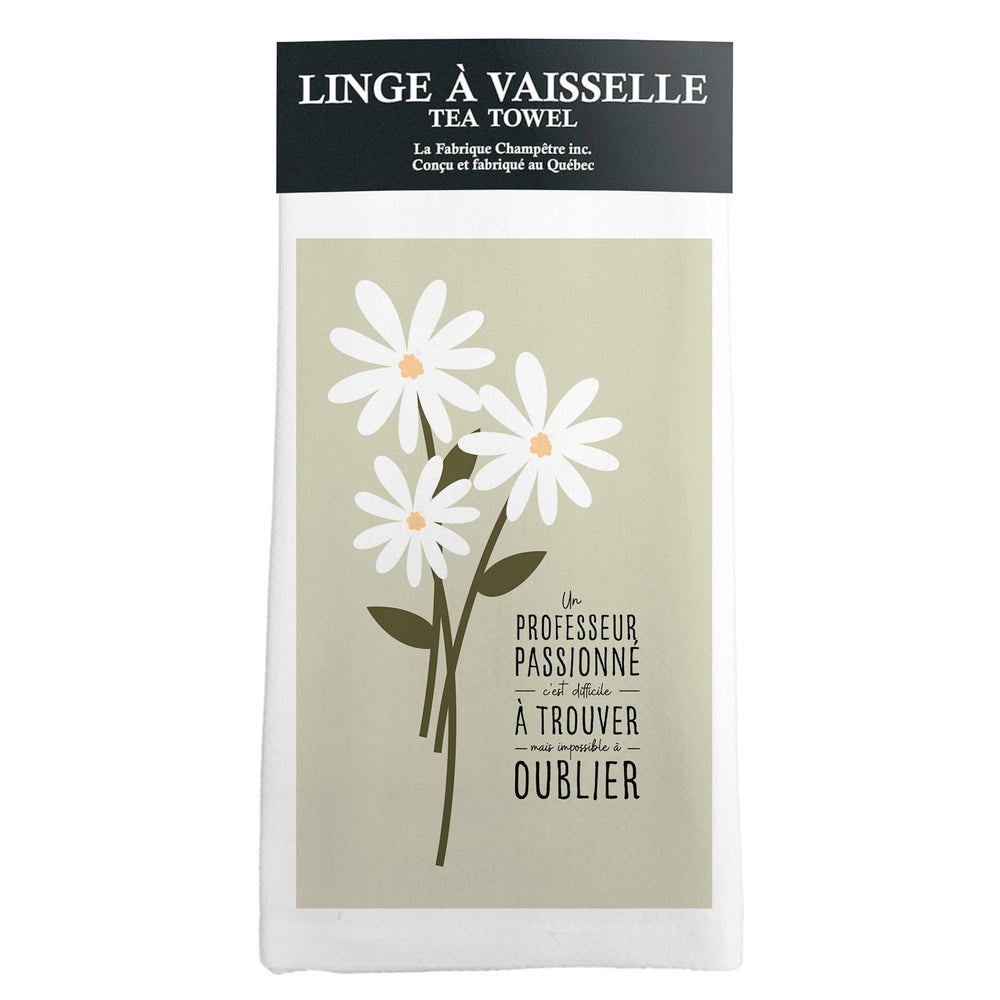 Ce linge à vaisselle est le parfait complément de cadeau à offrir à un professeur apprécié! Son inscription: «Un professeur passionné c'est difficile à trouver mais impossible à oublier» aura fière allure dans la cuisine de celui ou celle qui le recevra!