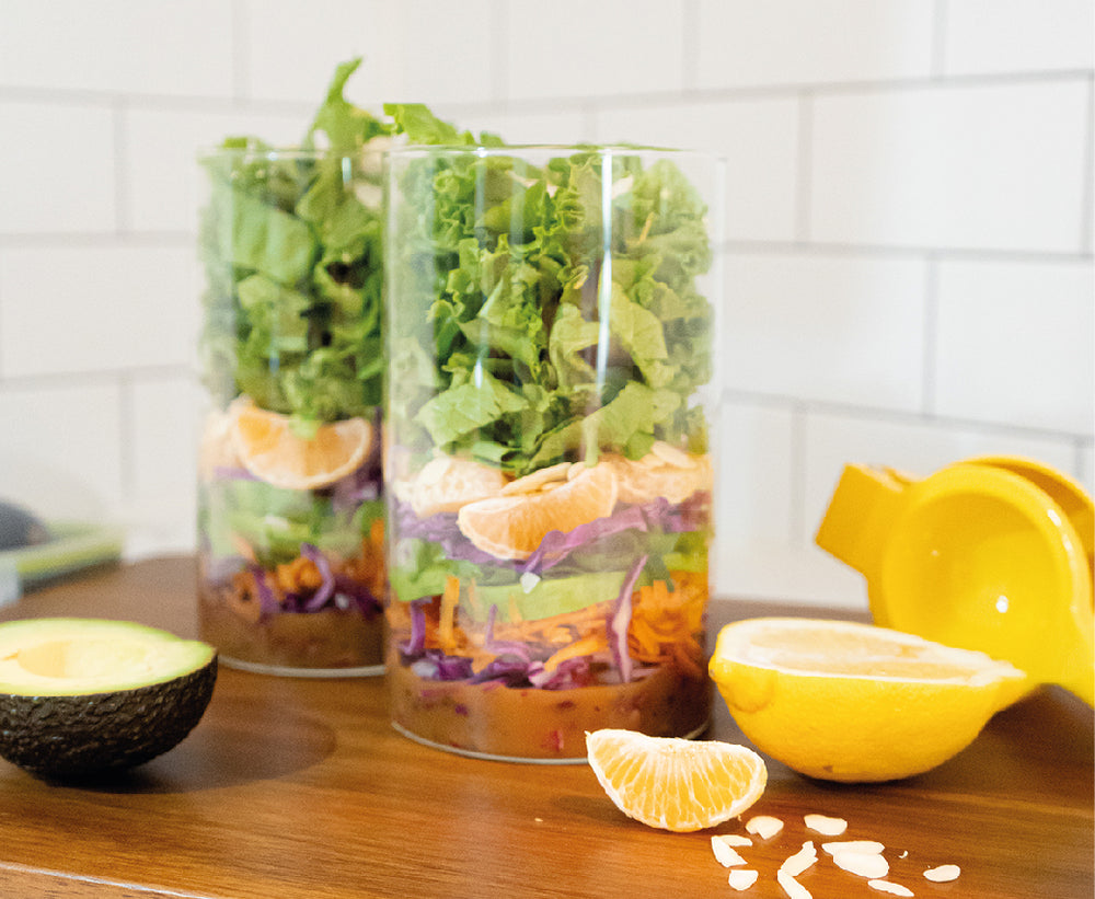 Our mandate for this post was simple. We wanted to bring you ideas for quick, delicious & nutritious meals. The obvious: salads. But we wanted to “twist” them up a bit, so that they'd be jarred, layered & ready to empty into a dish at a moment's notice.