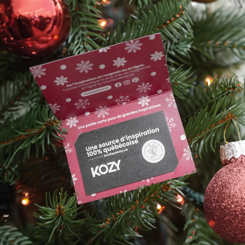 Vous devrez prévoir un délai de 3 à 5 jours ouvrables avant de recevoir la carte-cadeau par la poste. Notre carte-cadeau 100 % écologique est accompagnée d’une pochette aux couleurs de la saison.