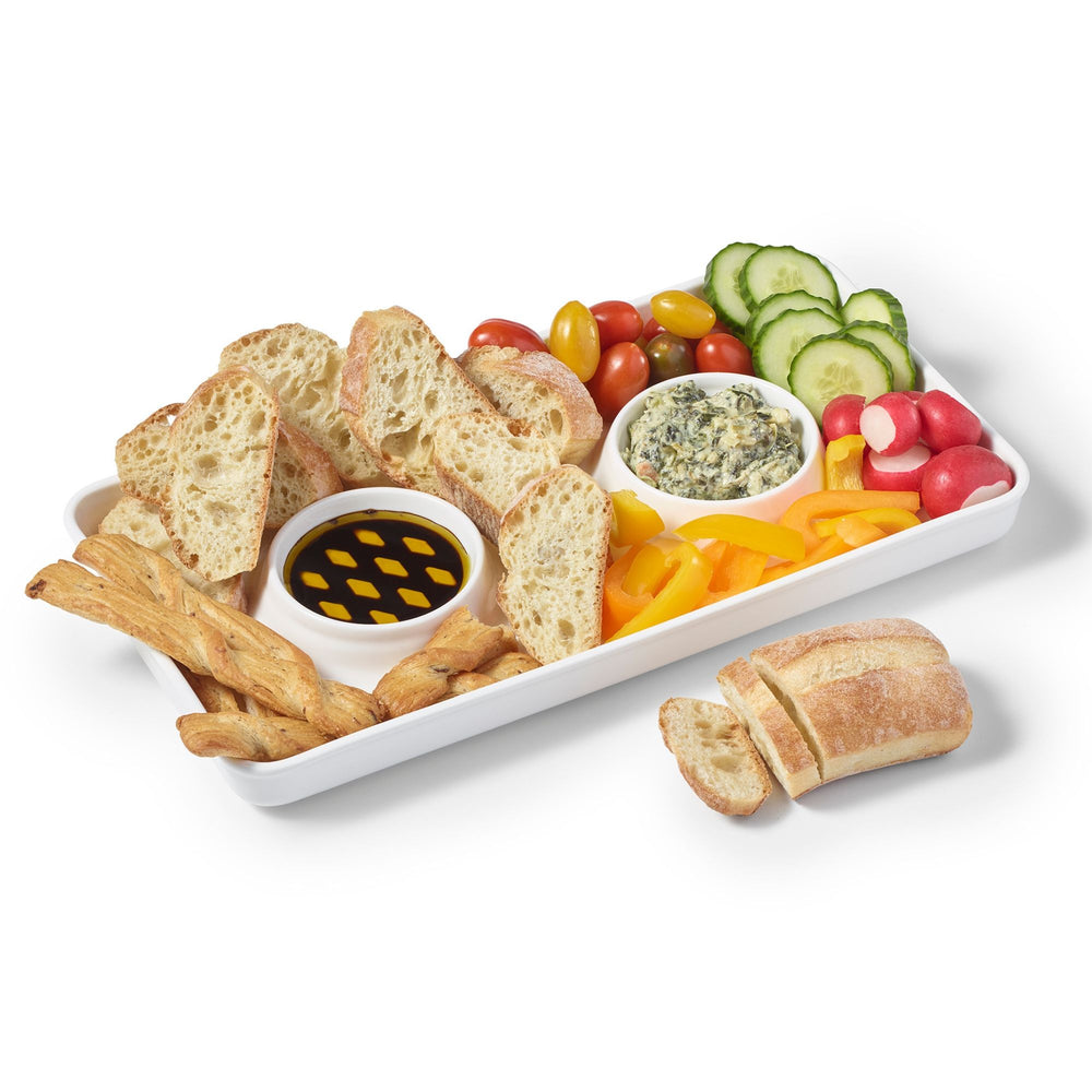 Magnifique assiette de service en porcelaine avec deux creux, conçue pour présenter vos hors-d'œuvre avec élégance. Polyvalente, elle est idéale pour toutes sortes de trempettes, des plus classiques aux plus gourmandes.
