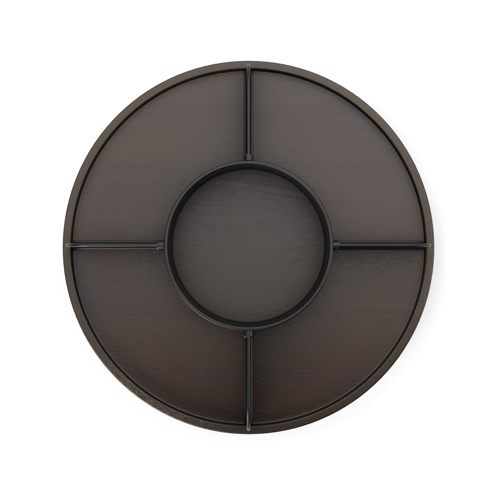 Pratique plateau pivotant sur 360 degrés. Ses 5 sections offrent l'espace pour organiser les petites bouteilles, les épices ou même les cosmétiques. Chaque section dispose d'un séparateur amovible, vous permettant de personnaliser sa disposition. Fabriqué à partir de plastique recyclé et de bois durable.