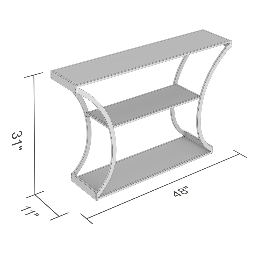 Apportez une touche industrielle et rustique avec cette élégante table console. Dotée de trois étagères spacieuses, soutenues par un cadre en métal noir robuste, cette pièce audacieuse allie style et praticité. Parfaite pour exposer vos objets déco ou ranger vos essentiels, elle s’adapte idéalement aux entrées, couloirs ou derrière un canapé. Sa structure durable garantit stabilité et longévité, tout en offrant un accès facile grâce à ses étagères ouvertes.