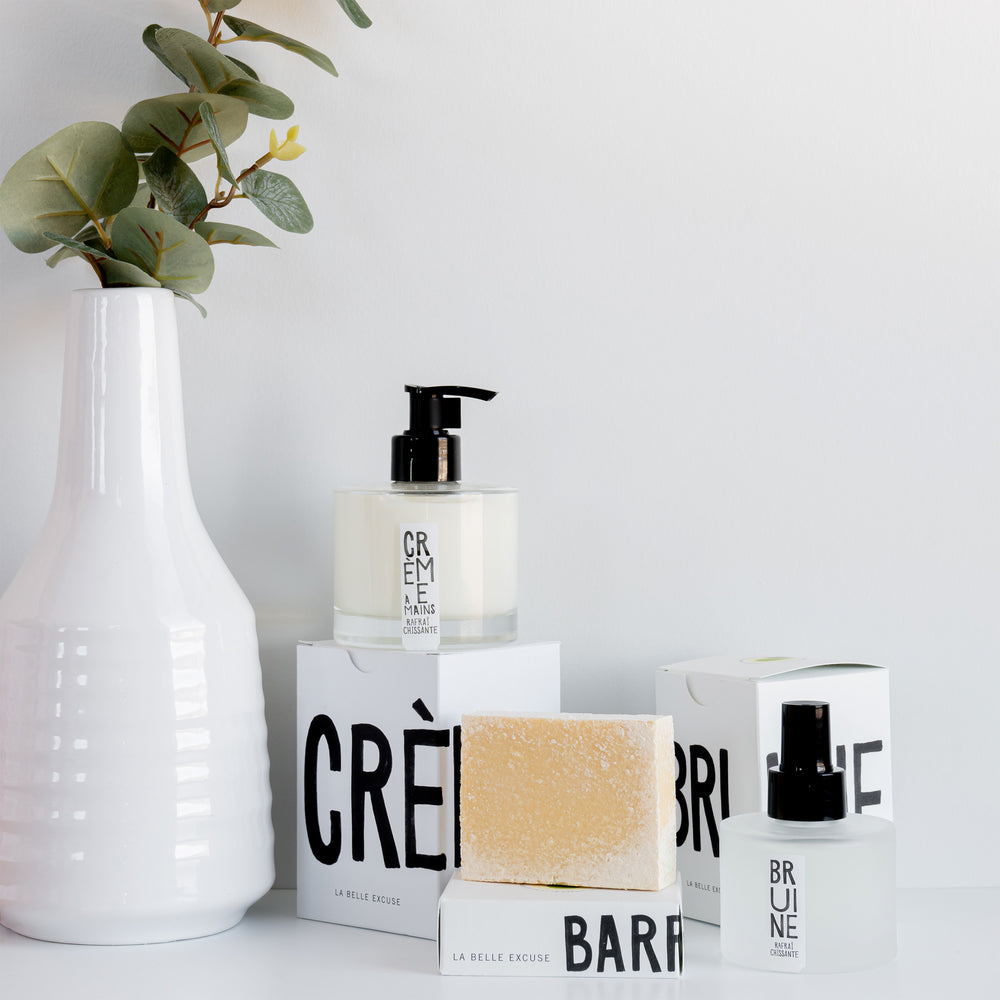 Offrez une bouffée de bien-être avec cet ensemble aux accents de spa, signé par la compagnie locale La Belle Excuse. Parfait pour une pause soin, tout en simplicité & en fraîcheur.
